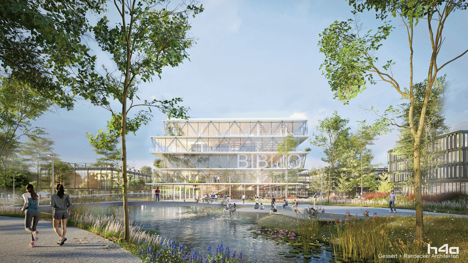 Auf dem Weg zur Klimaneutralität – in einem der größten Bauvorhaben Deutschlands realisieren Bundeswehr und Bundesbau den neuen Campus DOK für die Helmut-Schmidt-Universität in Hamburg. Den Masterplan für die Umsetzung haben h4a Architekten entwickelt, in Zusammenarbeit mit Glück Landschaftsarchitektur, BrennerPlan GmbH sowie Drees & Sommer.