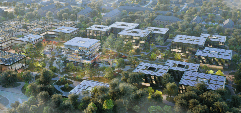 Moderner, offener und grüner soll der neue Campus werden und dabei ein hohes Maß an Aufenthaltsqualität bieten. Acht Bestandsgebäude werden Denkmalschutz-gerecht saniert und um Neubauten ergänzt, sodass der architektonische Charakter des denkmalgeschützten Ensembles erhalten bleibt.