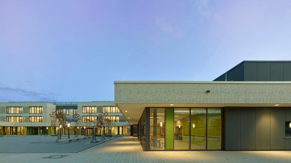 In dem neuen Gebäude der Integrierten Gesamtschule (IGS) im Norden von Frankfurt am Main ist vieles anders als an anderen Schulen, denn inklusive, vielfältige und flexible Lernorte erfordern auch andere räumliche Konzepte, um möglichst gleiche Bildungschancen für alle zu erreichen. Der Schwerpunkt der Gesamtschule liegt auf Sprache und Vielfalt, gleichzeitig ist die Ausrichtung stark inklusiv. Ein bisher einmaliges Konzept an einer weiterführenden Schule. Die IGS ist der erste Neubau in Frankfurt, im dem die Gestaltung inklusiver Beschulung von Anfang an so geplant wurde. Die Herausforderung der Aufgabe lag in der Verknüpfung von städtebaulichen Vorgaben und der Gewährleistung des Schulbetriebs. Dabei integriert sich die ruhige Geometrie der Einzelbaukörper nicht nur in Körnung und Textur in die Umgebung, sondern ist gleichzeitig Teil der sozialen Infrastruktur für den Riedberg. Sie bereichert das Schulangebot vor Ort und schafft die Voraussetzung für den weiteren Schulausbau sowie ein differenziertes Bildungsangebot. Sporthalle und Aula können außerhalb der Unterrichtszeiten für öffentliche Veranstaltungen oder von Vereinen genutzt werden. Das erfüllt den Campus mit Leben und lässt ein soziales Miteinander erwarten.